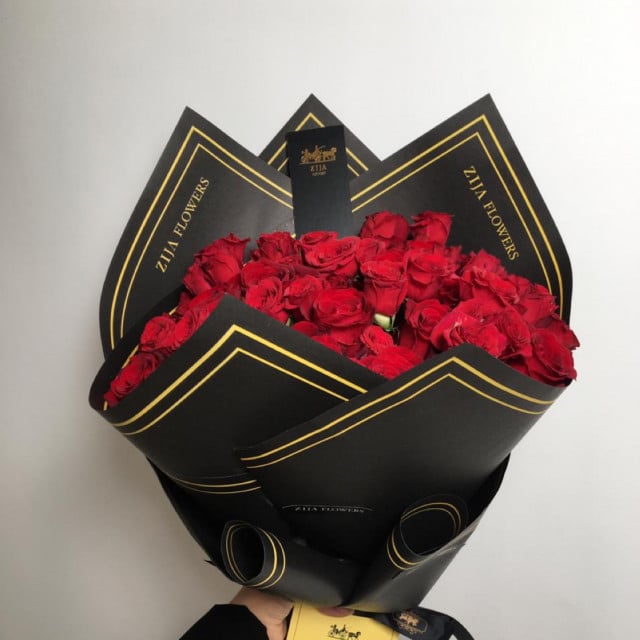 بوكيه أسود فاخر 40 وردة روز مع بيبي روز أحمر زيجا فلاورز Zija