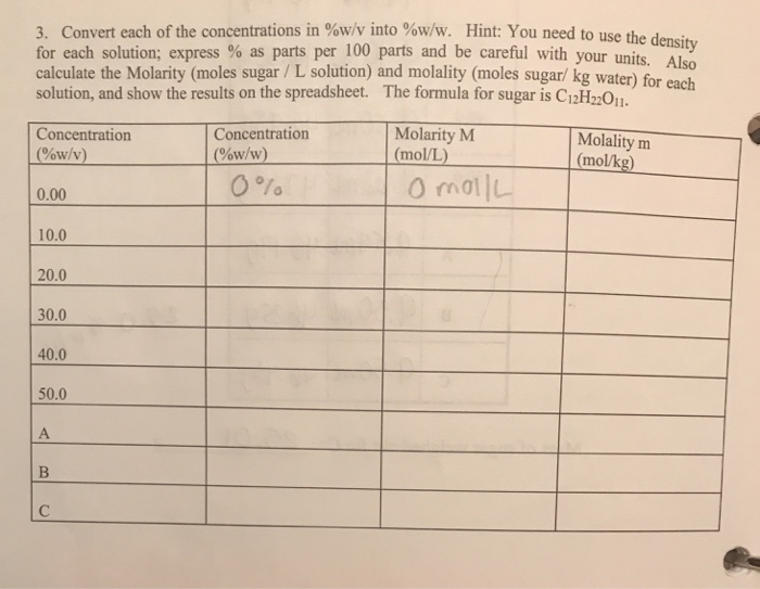 Solved 3 Convert Each Of The Concentrations In W V Into